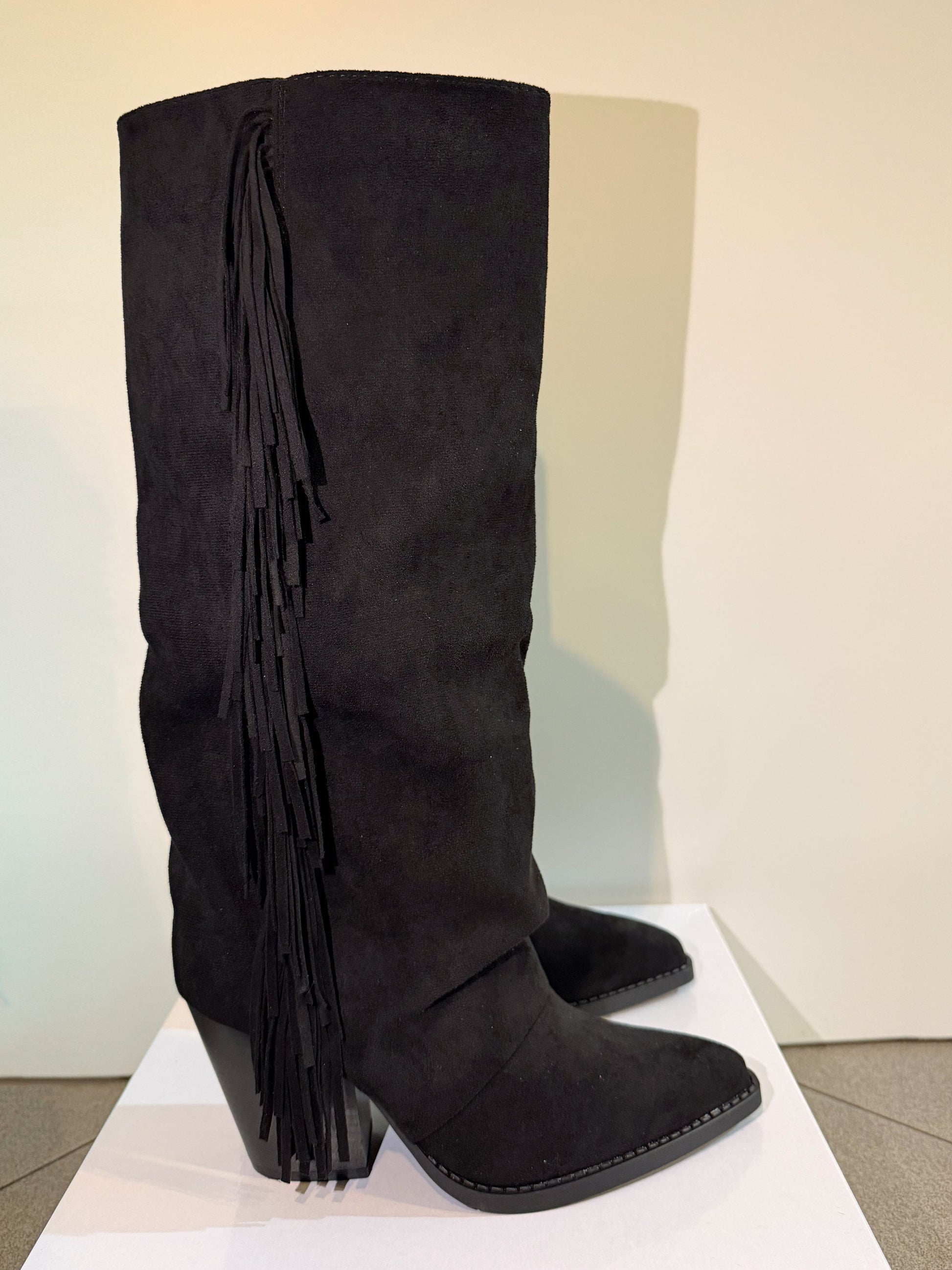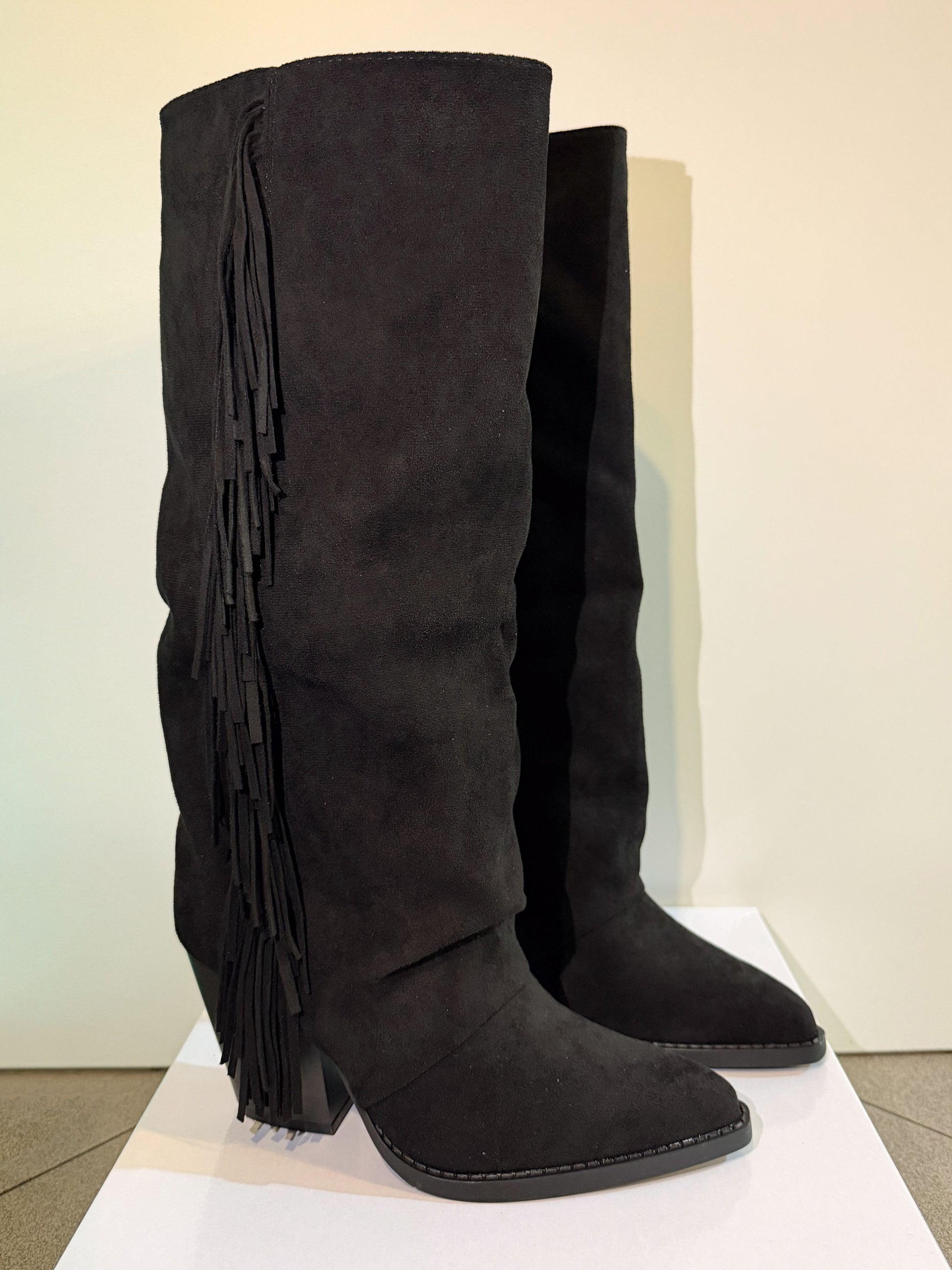 Stivale effetto camoscio con frange